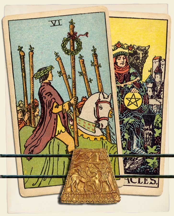 Six of wands and King of pentacles tarot combination means that two arcane momenta: (1) Praise and (2) Ambitious (as influenced by King of pentacles) currently guide your decisions. In other words, it means you are looking for the words of others to give you a sense of gratification in your work. But ambition must come from the desires of your own heart, not the opinions of others. Be careful to not depend on validation from others to create your self-worth. If you are able to begin praising yourself, your ambition will become authentic and therefore the results will feel fulfilling.