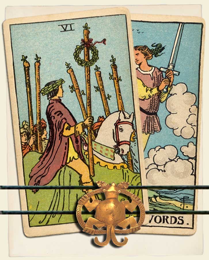 Six of wands and Page of swords combination means that tarot influences: I) RECOGNITION (Six of wands) and II) CURIOUS (Page of swords) have influence on you today. Someone is going to recognize you, and that person is very curious about you. They want to know about you and how you got to where you are. This younger person looks up to you. They can‘t seem to help just have much they want to know. So curious that it may be overwhelming. Be gentle with them, they are very bright.