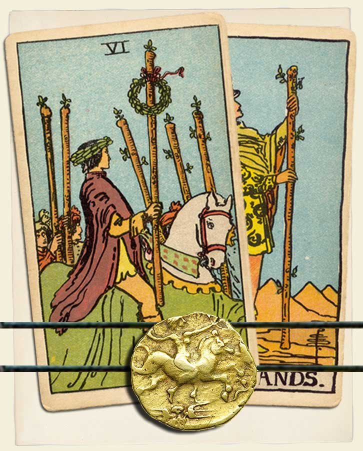 Six of wands and Page of wands combination indicates that two tarot influences: 1) Triumph and 2) Fresh Ideas are altering your life path at this reading. You have worked hard to get here, and you should be proud of yourself for overcoming obstacles on your way to a new beginning in your life, but the Page of Wands is restless. He can’t wait to get started, so he just leaves his page behind as he rushes off into the sunset with the Six of Wands right behind him. Don’t worry about it too much. The sun will come up again tomorrow morning, and everything will work out fine even if you don’t quite make it home from where ever you were when you left this six behind.