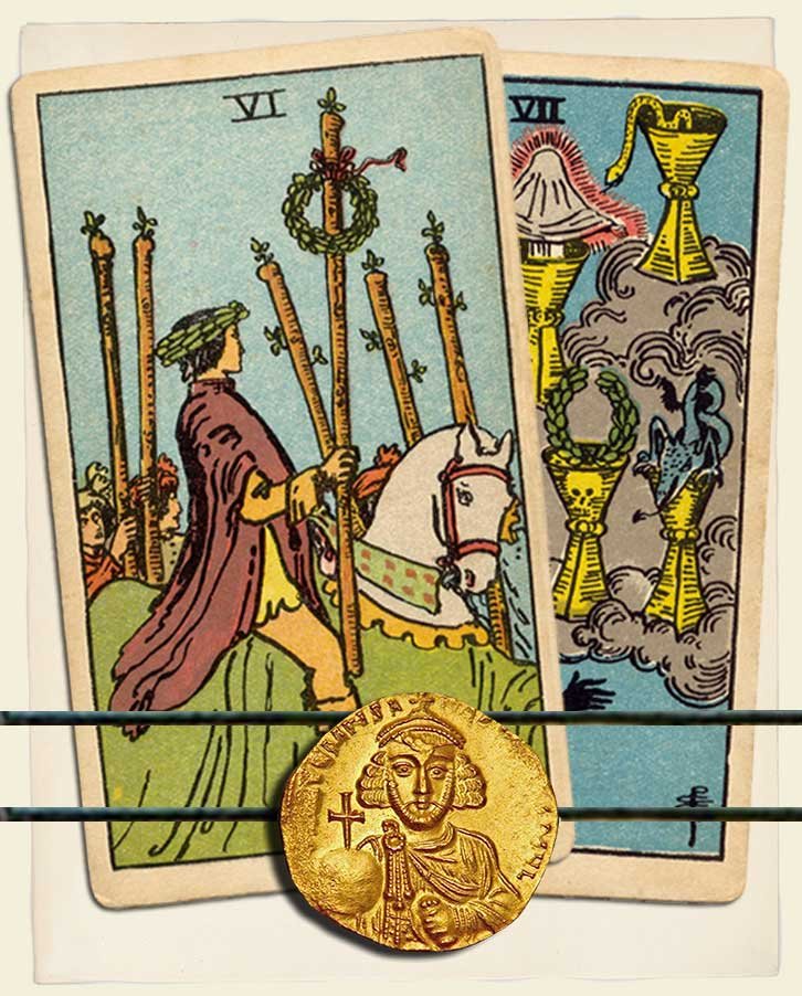 Six of wands and Seven of cups combination gives an insight into your medium-term future, which is influenced by the arcane forces of (A) Public Recognition and (B) Fantasy, but this is no fantasy. It is for real. You really did it, and this is all about you. You receive recognition for all your hard work in the Six of Wands, and where the Seven of Cups is concerned, it is beyond all your wildest dreams, but stay grounded. The Seven can be very seductive. You have something great going on in the six, but with the more illusory aspects of the seven involved, don’t let your imagination get away with you. Appreciate what you receive and don’t expect more than what reality has to offer.