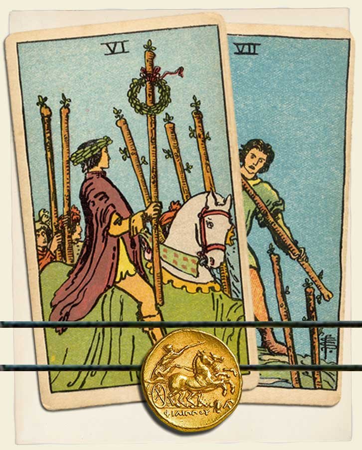 Six of Wands and Seven of Wands combo interpretation