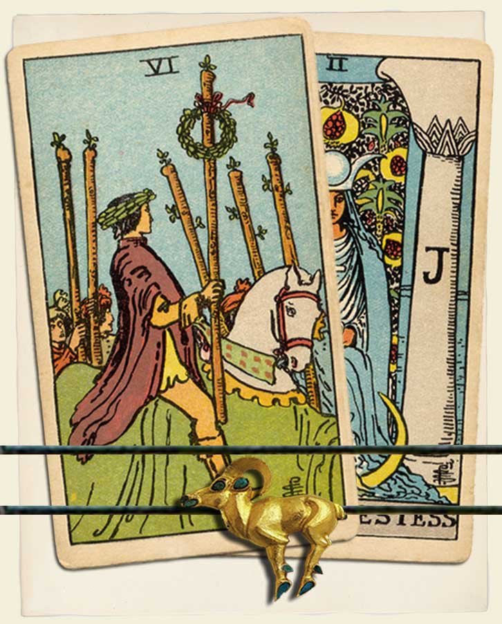 In the world of tarot, the Six of Wands and The High Priestess combination is considered an acceptable sign for love and relationships. This omen suggests that two tarot influences – Triumph and Higher Power – are altering your life path at this reading.