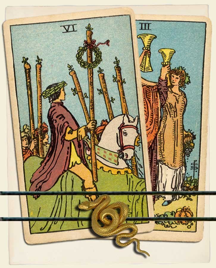 Six of Wands and Three of Cups combo interpretation