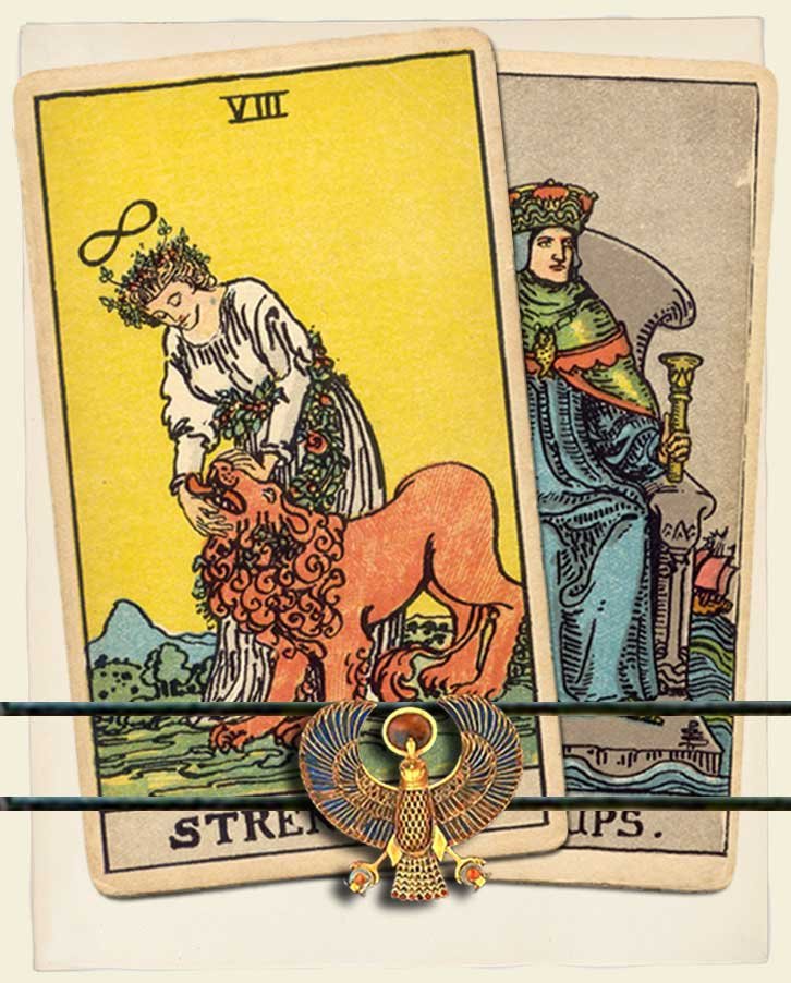 Strength and King of cups combination means that arcane tarot forces: 1) COURAGE and 2) BALANCE BETWEEN HEAD AND HEART are altering your life path at this reading with stamina and piety. Your life has come to a point where you need purpose. You can’t just wonder around all over the map forever. The King of Cups knows this, and he knows it is hard to settle down when the time comes, but he also respects self-control. He can teach it to you. Listen to him, and he will open the way to taming your inner beast.