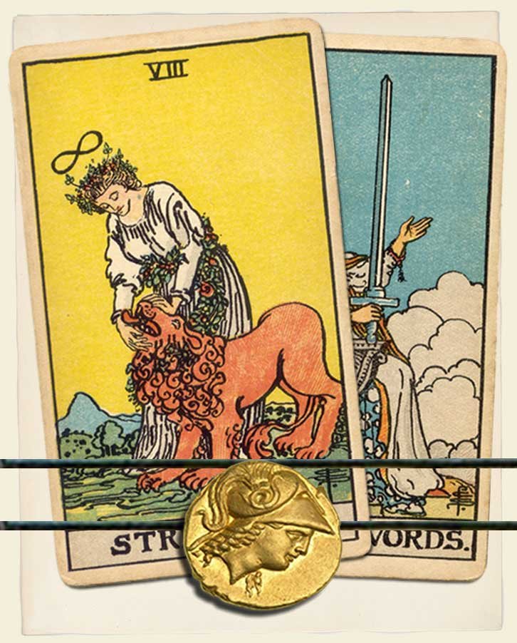 Strength clarified by Queen of swords is an omen that two forces: 1) Bravery and 2) Clear Boundaries are influencing you at the moment. Most tarot readers would consider this a step toward gaining independence. You have long sought the ability to place boundaries around yourself in certain situations but your kind heart has been a little unsure of the reaction of those you love. True friends are born from true respect. They will love you no matter what, and if they don’t they were never true friends.