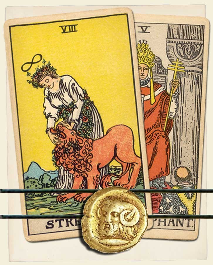 Strength and The Hierophant combination indicates that two tarot influences: A) Courage (Strength) and B) Conventionality (The Hierophant) are altering your life path today. What’s the advice of this pair? Strength represents having the courage to face difficult situations head on. It requires fortitude under fire, though, so it is a courageous energy. The Hierophant represents learning lessons in an orthodox way that can help you become more stable and balanced as a person. This card indicates that there may be something holding back your growth or preventing you from being true to yourself. You need to find the Courage (Strength) inside you to overcome whatever is blocking you.