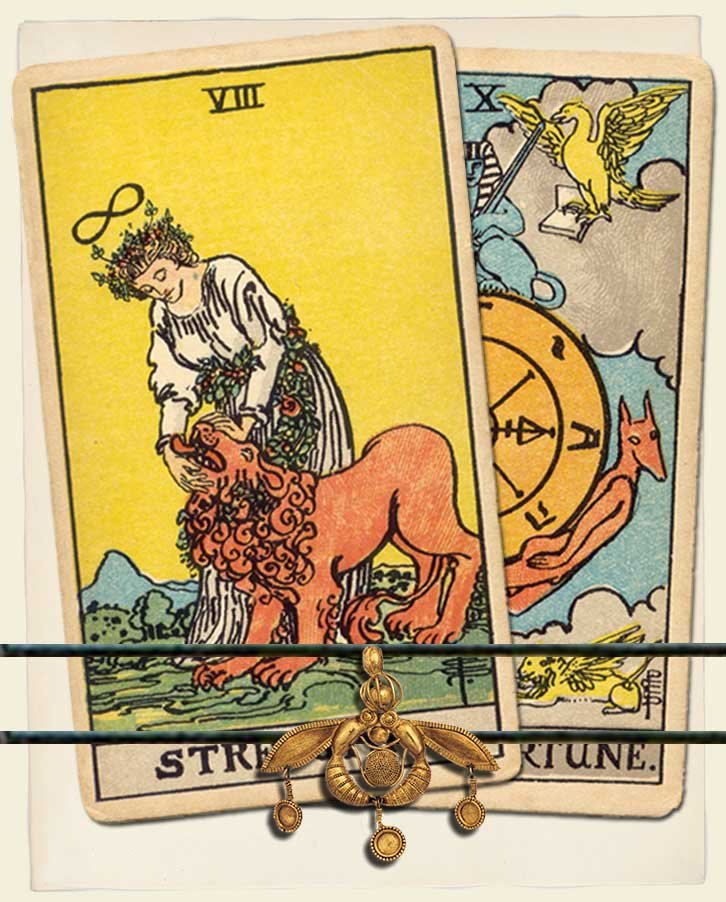 Strength and Wheel of Fortune combination indicates that tarot influences: 1) Courage and 2) Life Cycles govern your life decisions today. You have faced down difficult situations in the past, and you will do it again now. It is a mark of your character to face this challenge head on when Strength appears with the Wheel of Fortune, but don’t get too comfortable. This situation won’t last forever, so be sure to take advantage of the opportunity presented by the wheel before it passes you by.