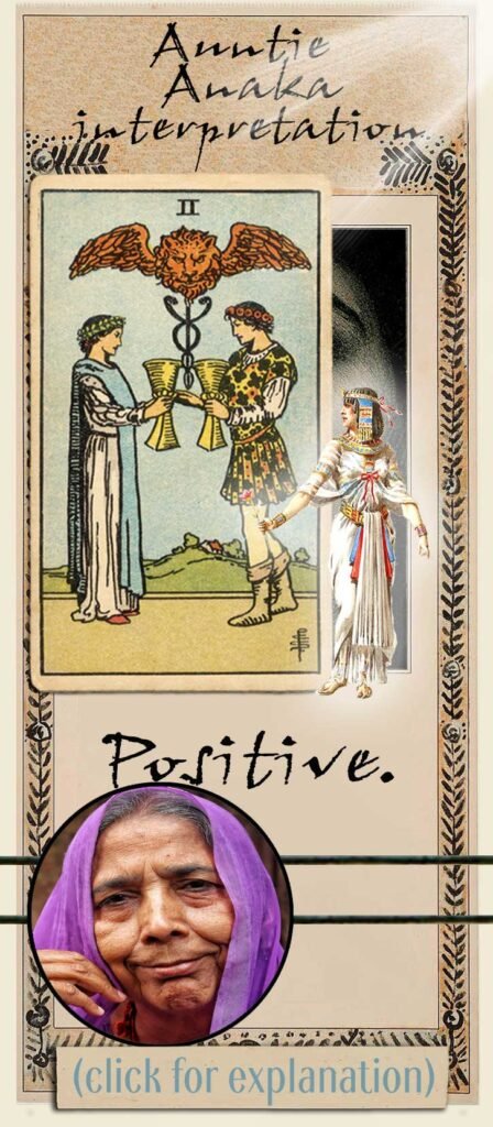 Answer: In my opinion, the love and relationship score for this card is +2 (moderately positive).