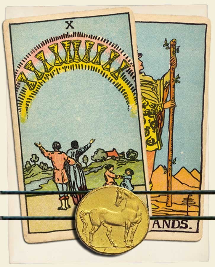 Ten of cups and Page of wands combination gives you a better insight into your near future. It is directed by the guiding influences of (A) Blissful Relationships and (B) Fresh Ideas. To put it differently, it gives you a sign of that your relationship is on track. It’s going better than you expected. Soon your partner may ask you to try new things. If you hesitate a little at first, I want to say that you will soon enjoy this situation.