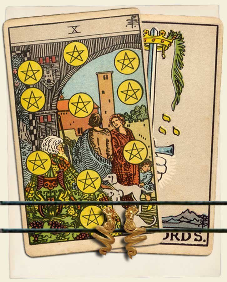Ten of Pentacles and Ace of Swords combo interpretation