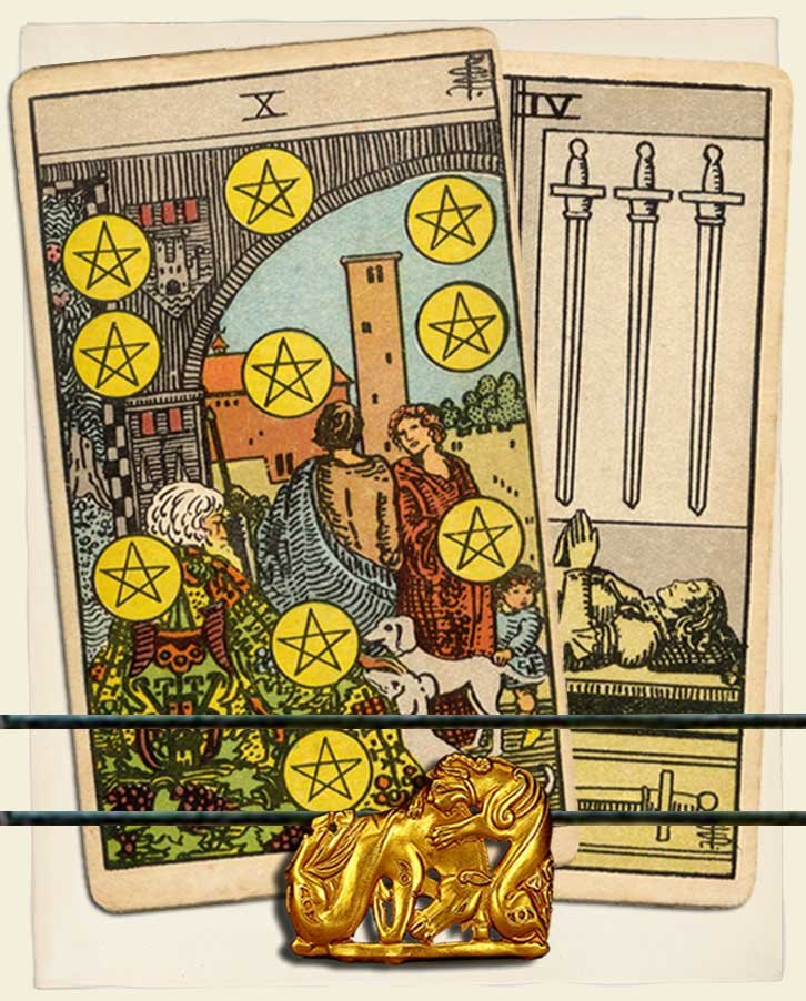 Here you can find the full lists of Ten of pentacles or Four of swords combinations, that go before and after your current combo.Three combos per day keep uncertainty away.