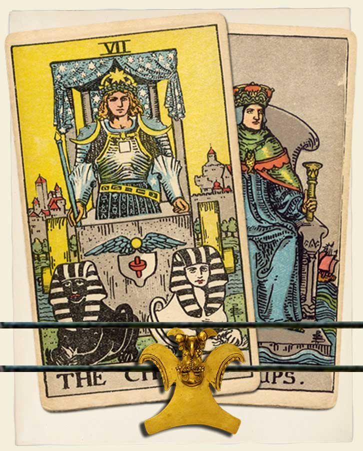 The combination of The Chariot and King of cups in tarot readings is a positive sign for love and relationships. This combination indicates that two forces, namely action and balance between head and heart, have an influence on the individual at this moment.