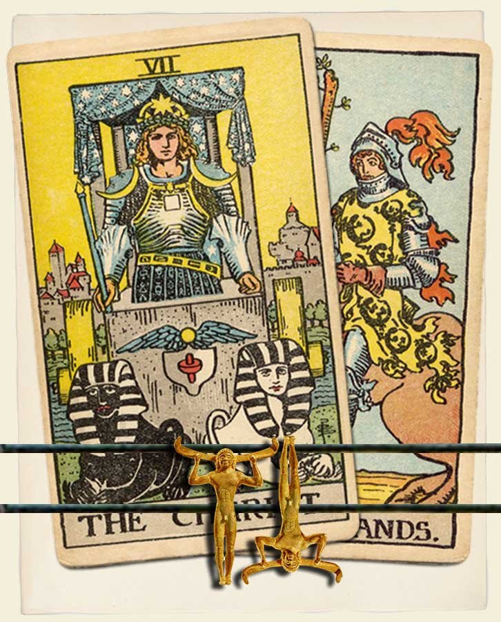 The Chariot and Knight of wands tarot combination gives an insight into your immediate future, which is influenced by the arcane tarot forces of (A) SUCCESS and (B) ENERGY. How to interpret this tarot combination in practice? In other words, it means that you have the capability and self-discipline needed to propel yourself into your pursuits. No matter your end goal, you are being called to re-invigorate your spirit by balancing your practical plans with your passions and desires. You have all the resources you need within yourself to succeed. It is time to take action with confidence. Dare to take that risk.