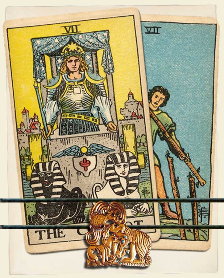 Well, well, well. It seems we have stumbled upon a rather interesting Tarot combination for love and relationships – The Chariot and Seven of wands. Now, let me tell you, this is not an easy one to decipher.