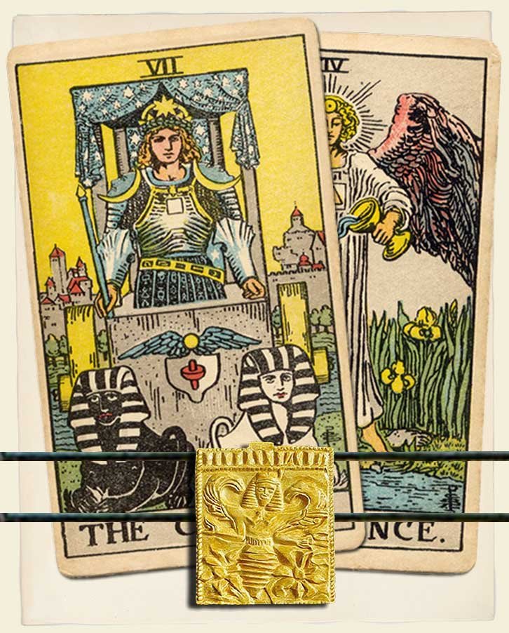 The Chariot and Temperance tarot combination gives a hint about an event in your future, which will come to pass from the combined effect of (1) AMBITION (effect of The Chariot) and (2) CALM (effect of Temperance). How to interpret this in practice? To put it differently, it means that opposing forces must be balanced in order to reach a desirable conclusion. Sometimes a warrior must do the work of a diplomat. Just because you can force your way through to a conclusion doesn’t mean that you should. Asking for something sweetly might work just as well if not better in the scenario you face now. Be firm but gentle in getting what you want.