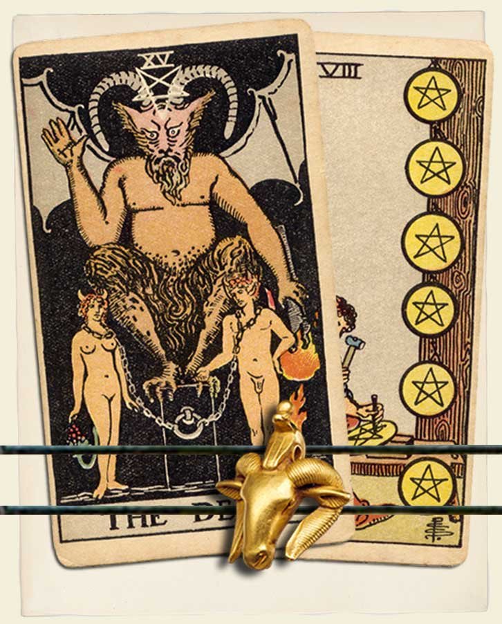 The Devil and Eight of pentacles combination means that tarot influences: (1) Shadow Self and (2) Talent (influence of Eight of pentacles) are exerting their influence on your life’s choices. The inner you that you choose to share with the world sparingly is hungry to be seen right now. You know there is more to offer of yourself, but you fear that revealing some of these talents may bring about your uglier qualities. Your past is not an indication of your present or your future. Do not let fear of yourself get in the way of letting your authentic light shine.