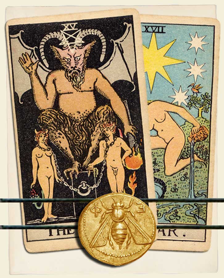 The Devil clarified by The Star gives a glimpse into your immediate future, which will come to pass from the combined effect of (1) RESTRICTION (effect of The Devil) and (2) INSPIRATION (effect of The Star). Don’t let anyone stop you from doing what it is you want to do. If someone sees you inspired, they should be stepping back and letting you go for it. If they don’t, they are the wrong people to have in your corner. Yes, that includes family. A harsh but fair scenario would be to question who has a healthy approach to your desires.