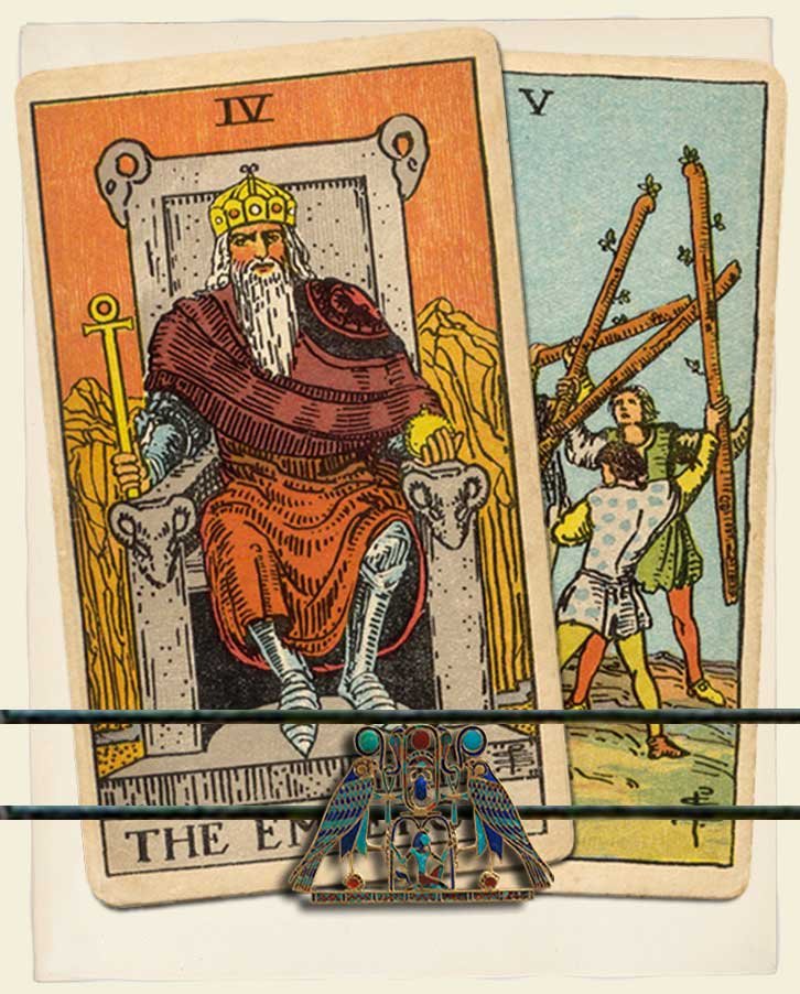 The Emperor and Five of wands combo gives a glimpse into a significant event in your future, which is influenced by the arcane forces of (A) STABILITY and (B) AGGRESSION. You are angry with people. You are adamant about your own wishes and not everyone agrees. Soon you will be in a conflict. If you insist on your decision and don’t listen to people, you may suffer great losses and be sad later on. I can even say that you will regret it and wish you had. Those who get up in anger sit in harm’s way. You should be more docile instead of being stubborn.