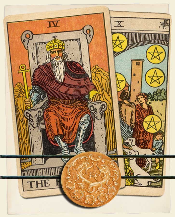 My dear child, the combination of The Emperor and Ten of Pentacles is a magnificent sign for love and relationships. It gives us an insight into our near future that will come about from the influences of structure and financial security. This means that you are in a good place financially, but you may be looking to take things further.