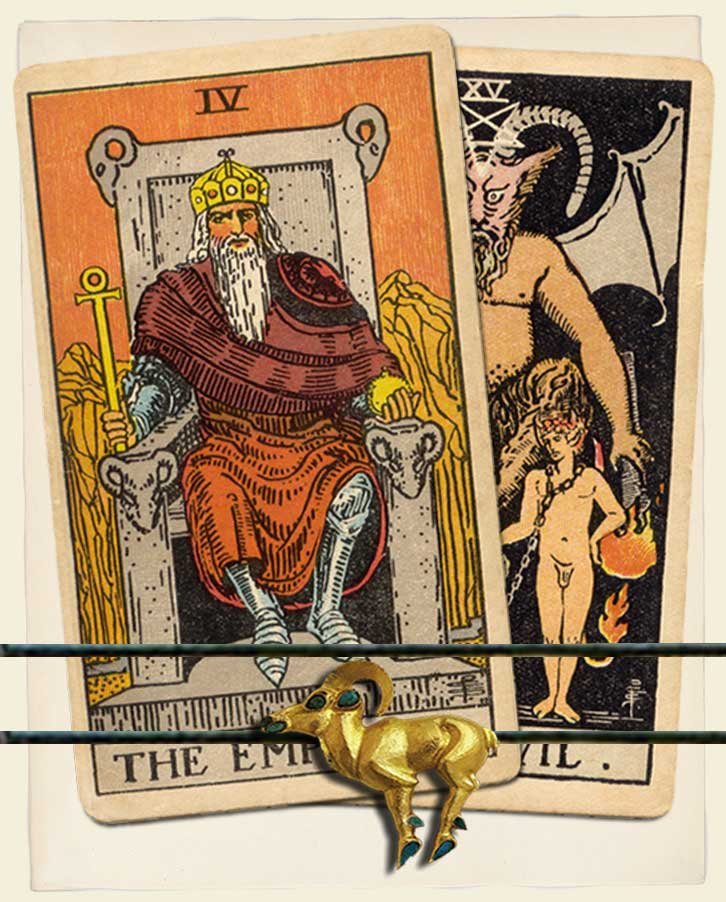 The Emperor and The Devil combination is a sign that two forces: 1) Structure and 2) Shadow Self together are exerting influence on you. In a nutshell, this can be a difficult combination of cards. What is being pointed out here can sometimes indicate a harsh ruler, one who uses punishment for corrective purposes. The Devil, our Shadow Self, can stand also for addictions, control and materialism. This card combination can suggest our own self-condemnation. You may be punishing yourself for things you cannot control. Be gentle! Use this time to heal our shadows, not shy away from them.