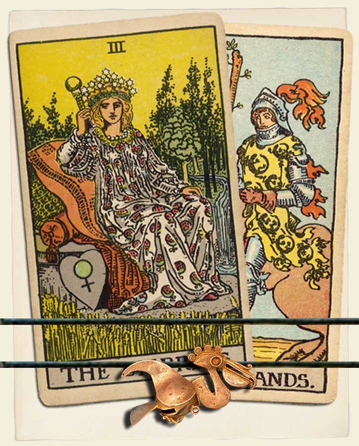 The Empress and Knight of wands tarot combination means that two arcane effects: 1) Nurturing and 2) Inspired Action are jointly affecting you today. You have been so focused on caring for others that your own needs have been neglected. Now your mind and body are longing for a self-care day. Commit to taking inspired action towards nurturing your own wellbeing as a priority today. This can take whichever form appeals to you, such as relaxing in a peaceful bath, indulging in yoga practice, eating a comforting meal, or even just turning your phone off and giving your busy mind some space to unwind.