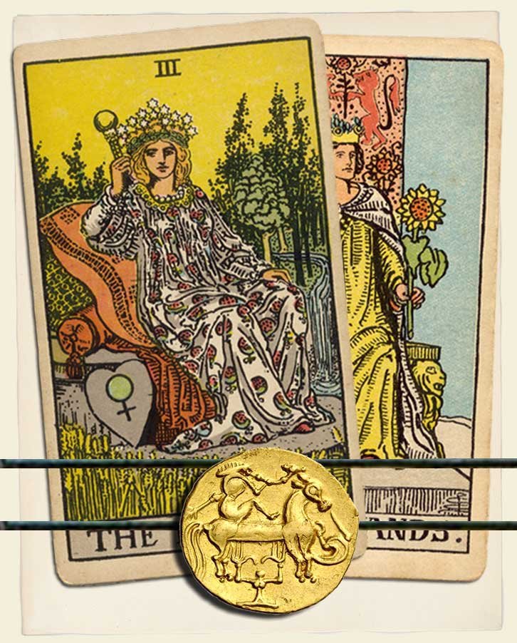 The Empress and Queen of wands combo indicates that two mystic forces: 1) Femininity and 2) Courage are influencing you at the moment. In other words, it means you are stepping out of the person who you used to hide behind – your own shadow. Of course, it isn’t actually a person, but that is how you have treated it. Don’t act as though it had any hold on you. Look in the mirror and embrace your feminine power, because you had it all along and now it has its chance to truly shine.