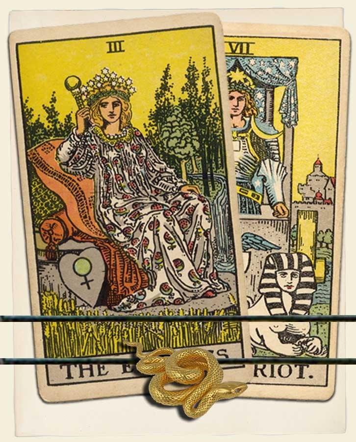 The Empress and The Chariot combo provides an insight into a major event in your future, which will arise from the combined effect of: (I) ABUNDANCE (effect of The Empress) and (II) ACTION (effect of The Chariot). What’s the advice of this pair? You are entering a period during which you may experience abundance. This can be anything from receiving more than you expect to having things fall into place for you after waiting for years on end. Whatever the case, it is a time when everything seems possible because there is so much going on around you that wants your attention. It’s easy to get distracted by shiny objects or feel as if all your hard work has gone unnoticed. Take action under this energy, but don’t burn any bridges along the way.