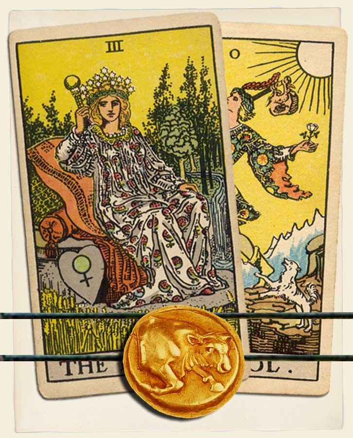 The Empress and The Fool combination gives you a divination about your distant and barely discernible future, which is influenced by the arcane forces of (A) NURTURING and (B) INNOCENCE. What this means for you is that you are entering a period of abundance. Your relationship needs nurturing at this point. There might be a marriage on the cards in the coming months, with the possibility of a child on the way. This will be a big change for you, but remember that it is the beginning of a new phase. You still have an innocence about you, which will make you seek out new experience that might seem “foolish” to those around you. Don’t let that deter you – keep moving forward.