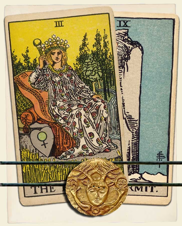 The Empress and The Hermit tarot combination gives an insight into your current state and immediate future, which is influenced by the arcane forces of (A) FERTILITY and (B) BEING ALONE. A period of deep introspection and reflection are upon you. Tend to yourself as a mother would a child, loving and caring for that which you have avoided in recent months. Spoil yourself with a massage or long bath, and consider what you need to do in order to achieve your goals of romance or motherhood. Your maternal instincts will know if you are ready. You just need to sit quietly enough to hear them.