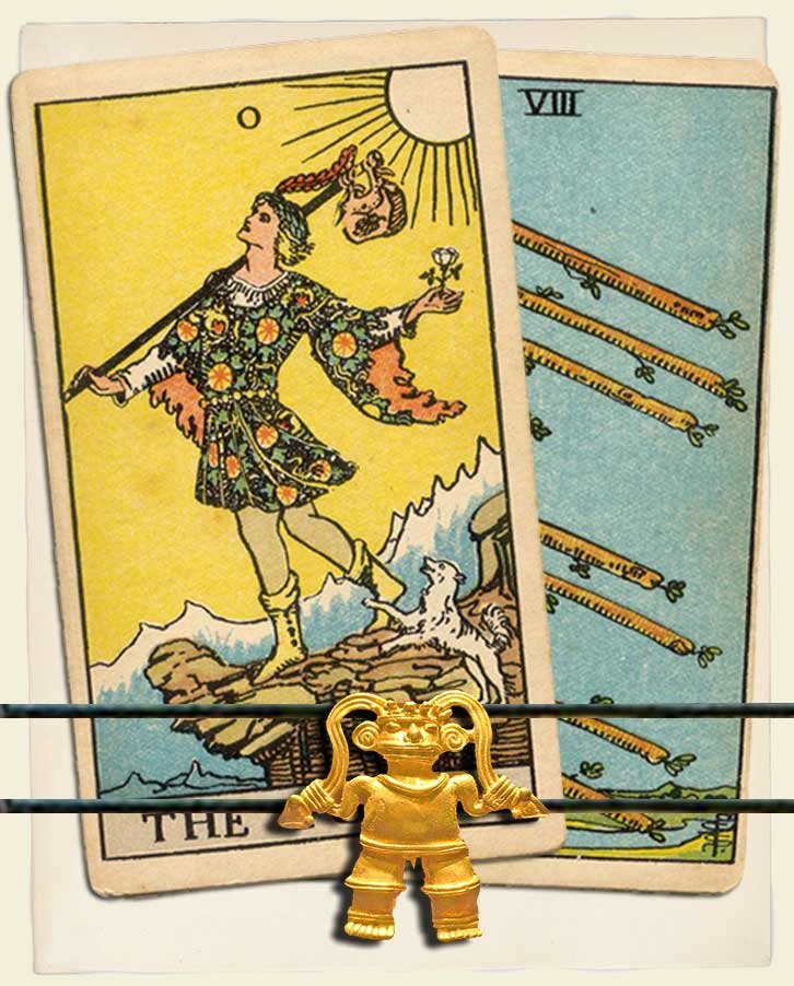 The Fool and Eight of Wands combo interpretation