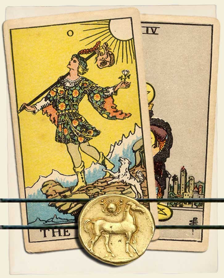 The Fool and Four of pentacles tarot combination is an uncertain sign for love and relationships. This reading suggests that two forces are affecting you: independence represented by The Fool, and hoarding represented by the Four of Pentacles.