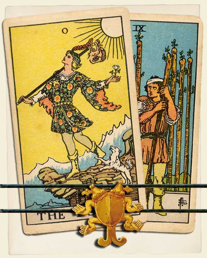 The Fool and Nine of wands together means that two mystic forces: A) ADVENTURE (The Fool) and B) RESILIENCE (Nine of wands influence) are affecting you today. What’s the advice of this pair? The presence of the Fool indicates that something exciting is likely to happen soon in your life. This energy often represents a new beginning, so it may be difficult for you to take advantage of it. If you don’t want things to get off on the wrong foot, now is the time to exercise prudence and set clear boundaries with people who might try to take advantage of your enthusiasm. The Nine of wands also indicates that there will be some difficulty getting through this situation unscathed. Be sure not only what you allow but also what others allow doesn’t cause any damage along the way.