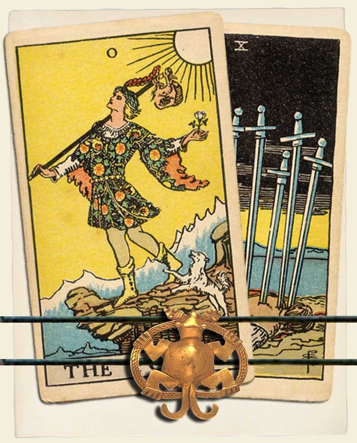 The Fool and Ten of swords tarot combination is an omen that two tarot influences: 1) Beginnings and 2) Deep Wounds are jointly exerting their influence on your life’s choices. You may be feeling the urge to rebel yourself, do things in a different and original way, to avoid structure and method: be careful, for your desires at the moment might be your worst enemies, and cause you big troubles afterwards – some of which might not be revertible. Thread carefully, and try to put your life in perspective before embarking on a new journey.