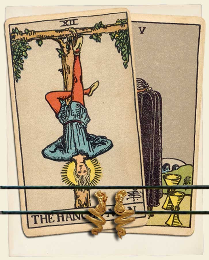 The Hanged Man and Five of Cups combo interpretation