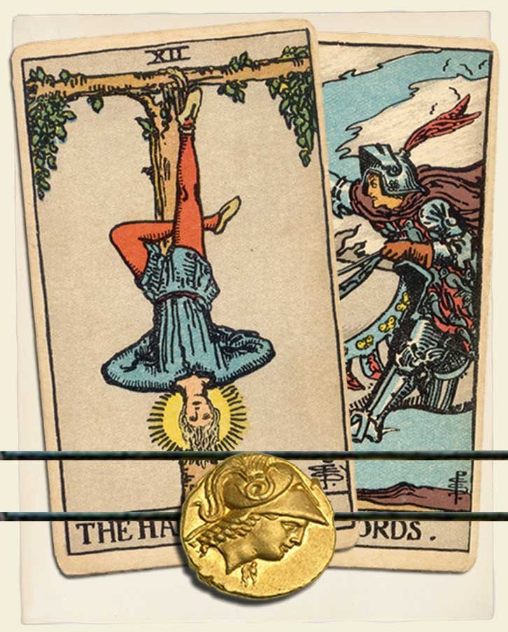 The Hanged Man and Knight of Swords combo interpretation
