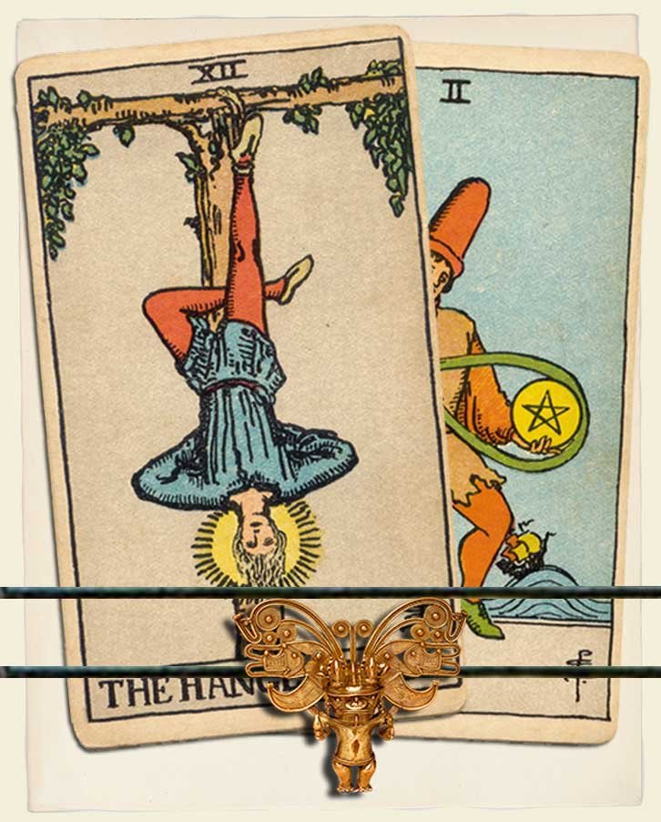 The Hanged Man and Two of Pentacles combo interpretation