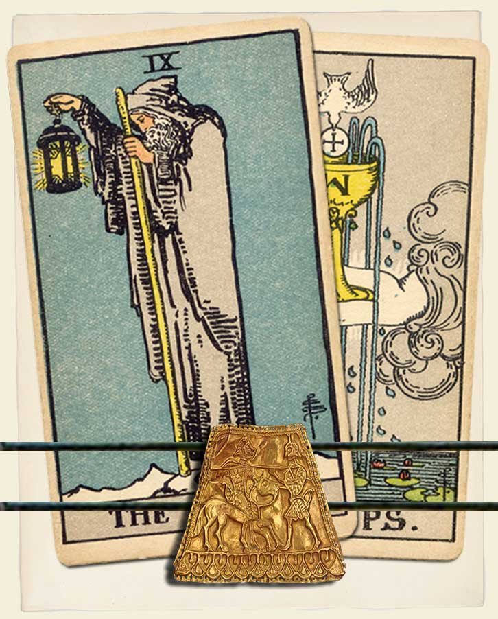 The Hermit and Ace of cups combination gives you intuition about your current state and immediate future, which is influenced by the arcane forces of (1) INTROSPECTION and (2) CREATIVITY. What’s the advice of this pair? The Hermit represents isolation to contemplate your life in a balanced way. This energy can be very inward-looking, though. It can also lead to stagnation if not balanced with enough outward communication. The Ace of cups indicates that there is something new on the horizon that will allow people into your circle who bring fresh ideas and feelings. Be open to these energies as they enter your life so you don’t isolate yourself too much.