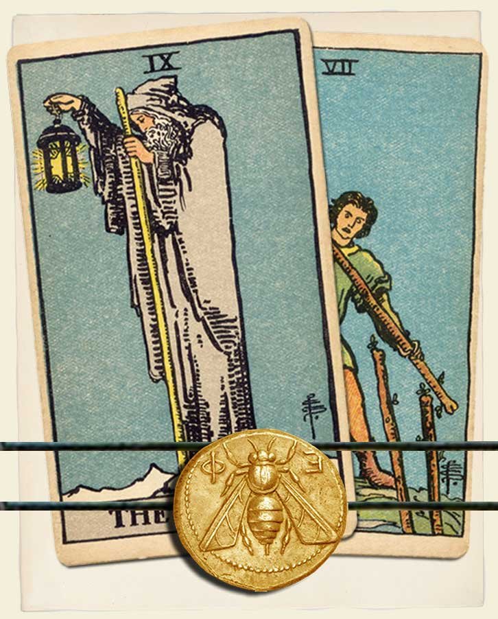 The Hermit and Seven of Wands combo interpretation