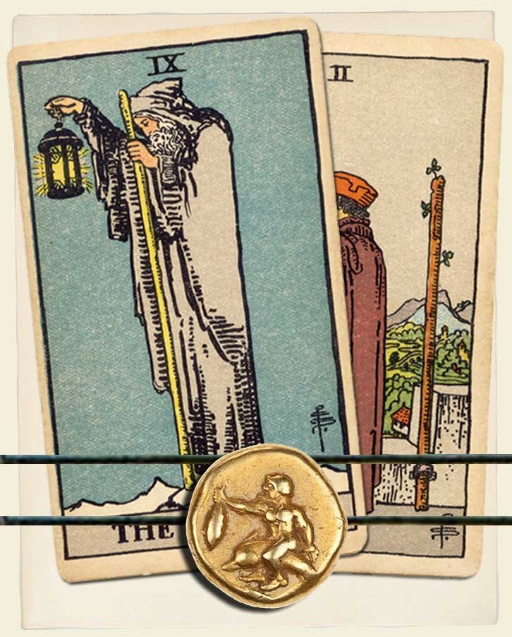 The Hermit and Two of wands tarot combination gives you a divination about your distant and barely discernible future, which is influenced by the tarot forces of (A) Introspection and (B) Discovery. These cards in combination represent a path that may be alone, but one that is filled with opportunity and light. You are in a place of beauty as you not only think, but plan your way to happiness. You don’t mind how long it takes.