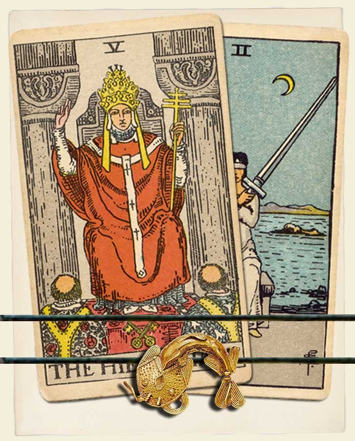 Well now, seems like we’ve got a bit of a situation here in regards to love and relationships. The Hierophant and Two of swords tarot combination is telling us that there’s some sort of standoff between what we want and what we think we should want. And let me tell you, this ain’t no comfortable situation.