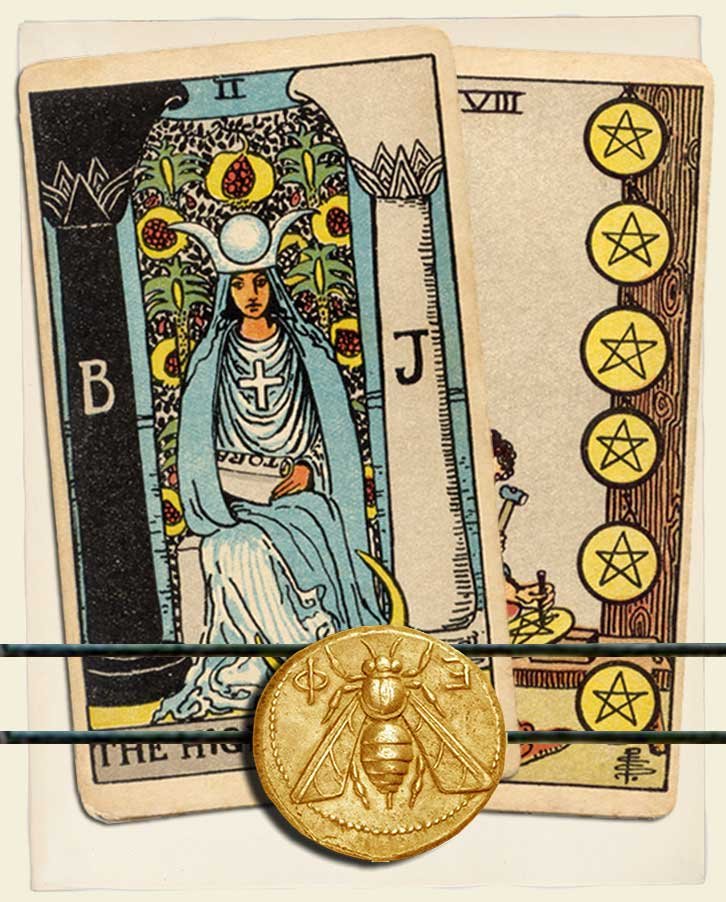 The High Priestess and Eight of pentacles combination means that two forces: 1) The Subconscious Mind and 2) Quality are exerting their influence on your life’s choices. In essence you work hard to determine your own intuition. It isn’t something that always came naturally to you, but without it you would be lost in a sea of liars and backstabbers. Don’t allow this power to slip over coming days, because people want to chip away at you. Let them at your peril.