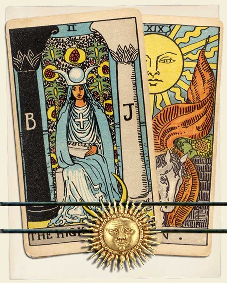 The High Priestess and The Sun combination gives a hint about an outcome in your future, which is influenced by the arcane forces of (A) INTUITION and (B) HAPPINESS. Most tarot readers would consider this a sign that you will soon find yourself at a crossroads. In one direction lies material success, in the other, the promise of love. Well, hasn’t this been the dilemma of your life? Still, if these cards are to be believed, the solution is far simpler than you might think. Simply allow your heart to lead the way – your feet will soon follow.