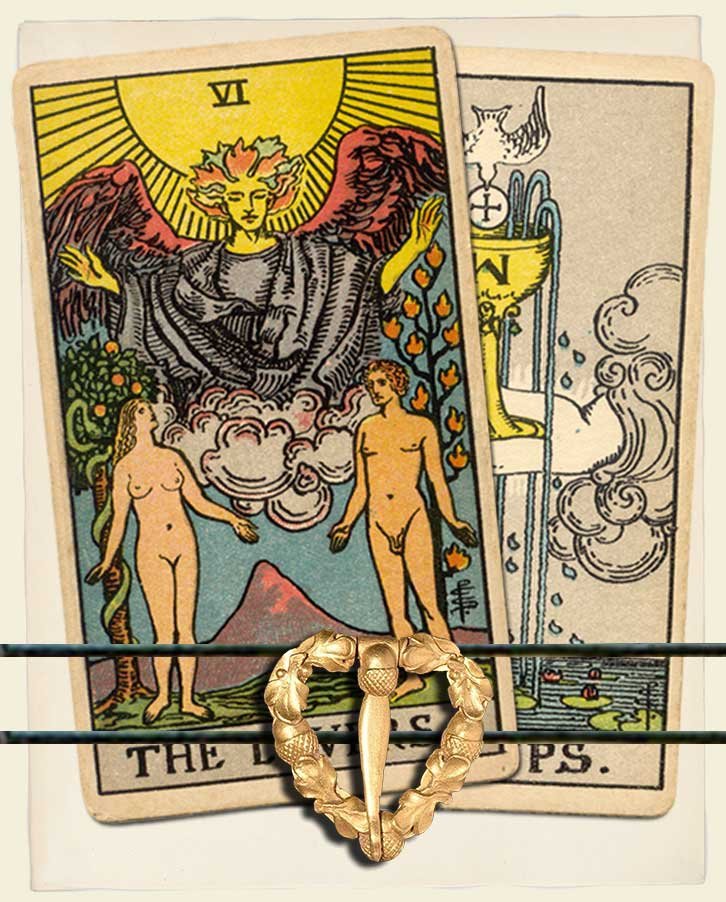 The Lovers and Ace of cups combo provides an insight into your near future, which is influenced by the tarot forces of (I) HARMONY (from The Lovers) and (II) NEW RELATIONSHIPS. To put it differently, it means that this is the time for Love, with capital letter: if you already found the person that makes your heart race, you’re going to fulfill your dream of relationship, if the partner of your dreams is yet incognito, worry not, it is just a matter of time: the universal forces of attraction are working for you!