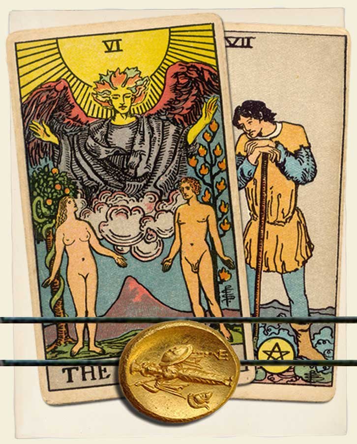 The Lovers and Seven of pentacles combination gives a glimpse into your near future, which is influenced by the arcane forces of Partnerships and Rewards. What’s the advice of this pair? The Lovers card represents a powerful partnership that is equal and fair. This card indicates that there is or soon will be a relationship of this kind in your life. The Seven of pentacles represents waiting for the fruits of your hard work to bear. In combination with The Lovers, this indicates that you may have expected to “have it all” and that’s not happening. Adjust your perspective. The Lovers isn’t a destination. It’s a place from which you can work together to get somewhere. Be patient, and your reward will come.