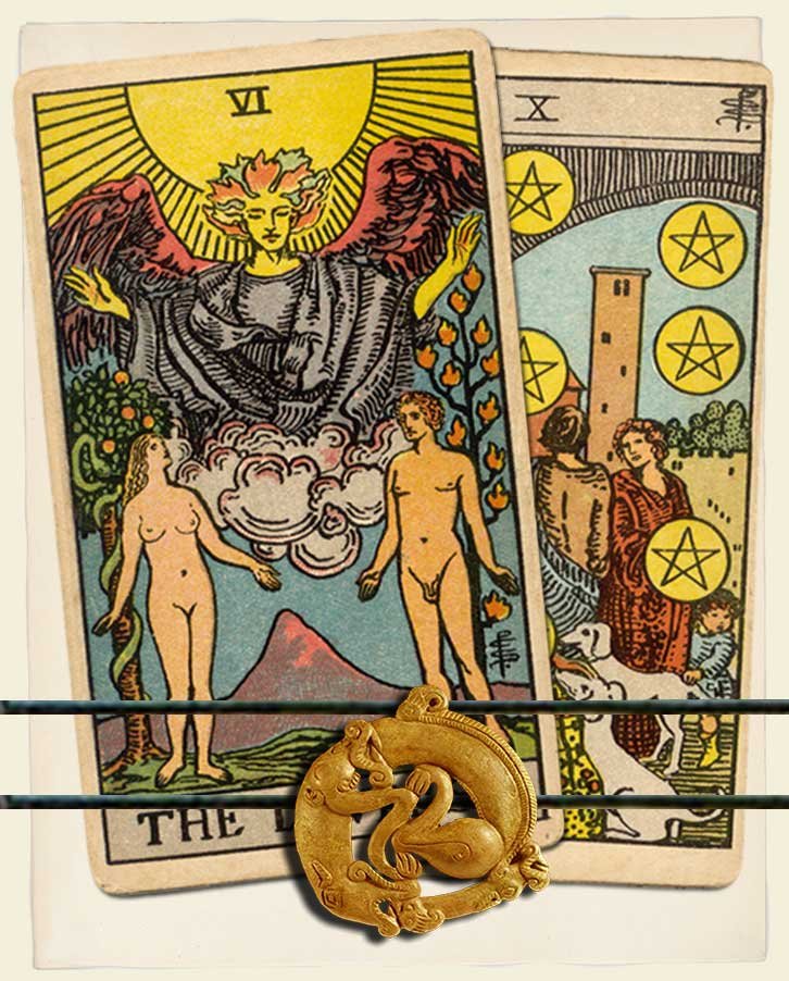 The Lovers and Ten of pentacles combination is a magnificent sign for love and relationships. These cards give you a hint about your distant and barely discernible future, influenced by the arcane tarot forces of love and family. It suggests that you will soon return home, in more ways than one.