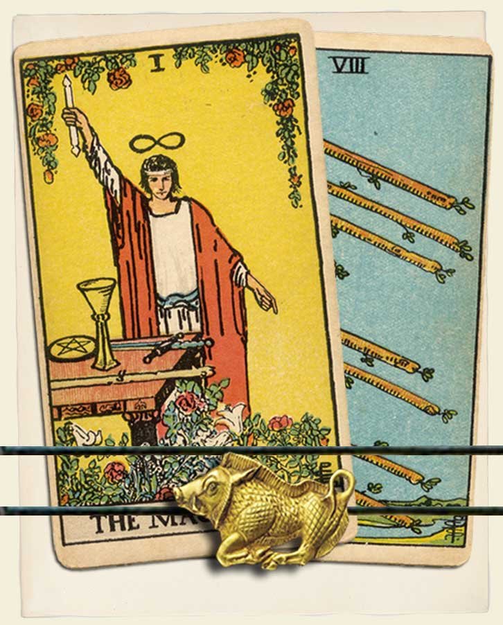 The Magician and Eight of wands cards together – what do they mean? The eight of wands shows that things are moving quickly but the magician lets you know that you have the power to determine the pace. If things are going too quickly for you, take a moment to step back and slow down. If you are overwhelmed, take a break. Assess the situation and decide what needs to be done immediately and what can wait until later. If you keep working, you will reach your goals no matter the pace you are moving at. Stay focused but remember to relax. Moving too quickly may mean you do not do the job as well as you should.