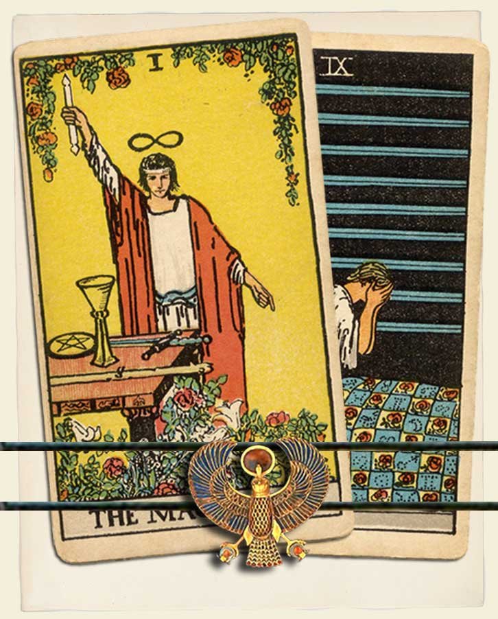 The Magician and Nine of swords cards together – what do they mean? The nine of swords indicates heavy feelings while the magician shows it is within your power to move past them. Negative thoughts can weigh a person down. You have the power to change them to positive thoughts. Take time to think about things and how you might reframe your thoughts and feelings in a positive light. Use that positivity to move forward in accomplishing your goals. Look at things from a positive standpoint and think about how you can get rid of your negative self-talk. Focus on the positive and use the momentum from that to start moving forward.