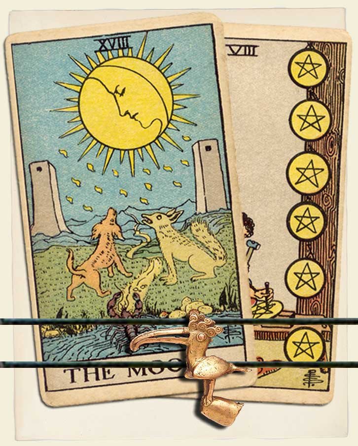 These cards carry a message of illusion and quality guiding your decisions today. The Moon represents emotions, which can be attractive but also misleading. It is important to be aware that not everything may be as it seems. There may be hidden obstacles that need to be addressed before anything can grow enough to harvest or mature.