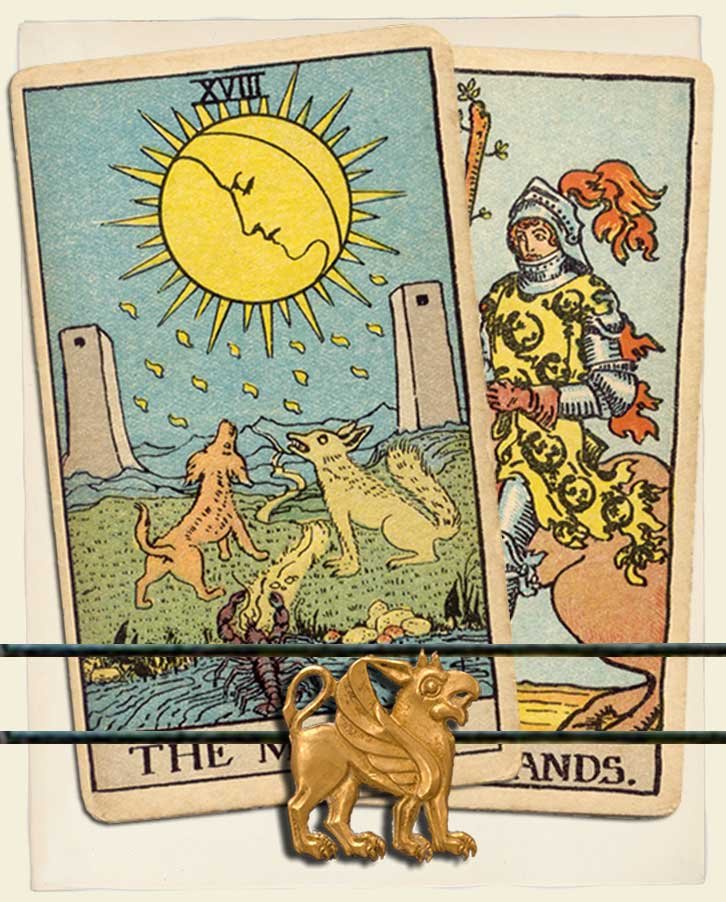 The Moon and Knight of wands combination means that two arcane effects: 1) Subconscious and 2) Energetic are affecting your life path at this reading. What’s the advice of this pair? The Moon represents your emotional self, so it is a good sign when you can access feelings that may have been suppressed for some reason. This often requires going into therapy or counseling to process things from your past. The presence of the Knight of wands indicates that there is something exciting happening in your life, possibly involving new relationships or projects. It also indicates an energetic approach to whatever you want to achieve (e.g., “fire in the belly”). Be careful not to burn too brightly before you get everything set up properly and avoid setting yourself up for failure.