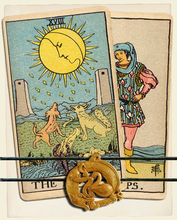 The Moon and Page of cups combination gives a glimpse into your distant and barely discernible future, which will come to pass from the combined effect of (1) Confusion (effect of The Moon) and (2) Innocence (effect of Page of cups). Those cards together represent an inner spirituality that can be easily ignored with the weight of responsibility. As the sun rises, so does your new found energy. Tune into the fun the world has to offer every now and then and re-balance your life.